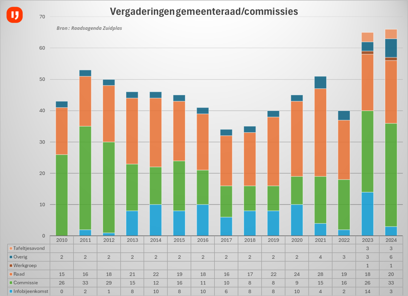 Er werd veel vergaderd op het gemeentehuis waarvan een aantal niet toegankelijk waren voor de pers en publiek. Zo is er een werkgroep Cortelande waarbij de nieuwsgierige oren van de verslaggevers niet welkom zijn. Ook andere werkgroepen zoals over de vergadercultuur en de auditcommissie zijn achter gesloten deuren. Ook een aantal vergaderingen van de raad en commissie zelf als ook heisessies van de raad zijn niet openbaar geweest. Maar uit onderzoek bleek dat het aantal vergaderingen in 2023 en 2024 beduidend hoger lag dan de jaren ervoor.