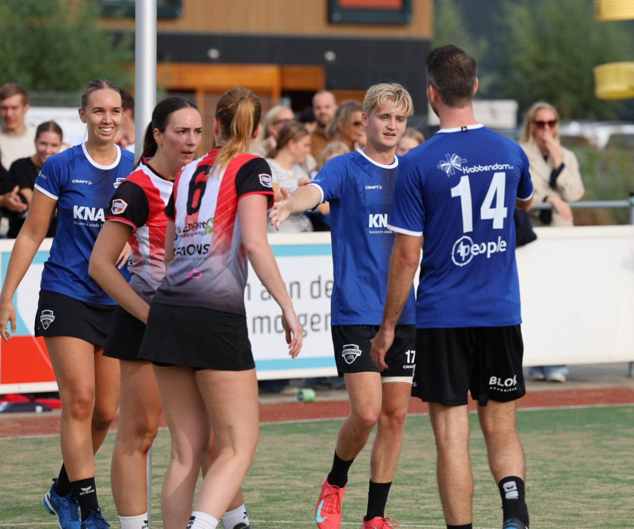Gelukkig werd het droog op het moment dat Nieuwerkerk en Fortuna begonnen aan hun wedstrijd in de Ereklasse. Het was lekker druk op de Kleine Vink. Veel mensen die wilden zien hoe Nieuwerkerk het zou doen tegen de absolute top van Nederland. Dat publiek kon trots zijn op de inzet en de prestatie van Nieuwerkerk 1. Nieuwerkerk bood goed partij tegen Fortuna. Fortuna speelde inderdaad zonder topschutters Nik v.d. Steen en Fleur Hoek. Dan blijft er nog genoeg kwaliteit en vooral fysieke kracht over. Het was prachtig om te zien hoe bijvoorbeeld de jonge Kas v.d. Heuvel daar zijn eigen kracht tegenover zette. Nieuwerkerk begon weer met vier spelers van 20 jaar in de basis. Het eerste kwartier waren de goals duur. Fortuna scoorde er twee via Renee van Ginkel en Roos van Groen. Nieuwerkerk zette daar twee treffers van Van den Heuvel en de 21-jarige Robin Bal tegenover. Diezelfde Van den Heuvel zette zijn ploeg, wederom vanaf de stip, voor de eerste keer op voorsprong: 3-2 na een kwartier.