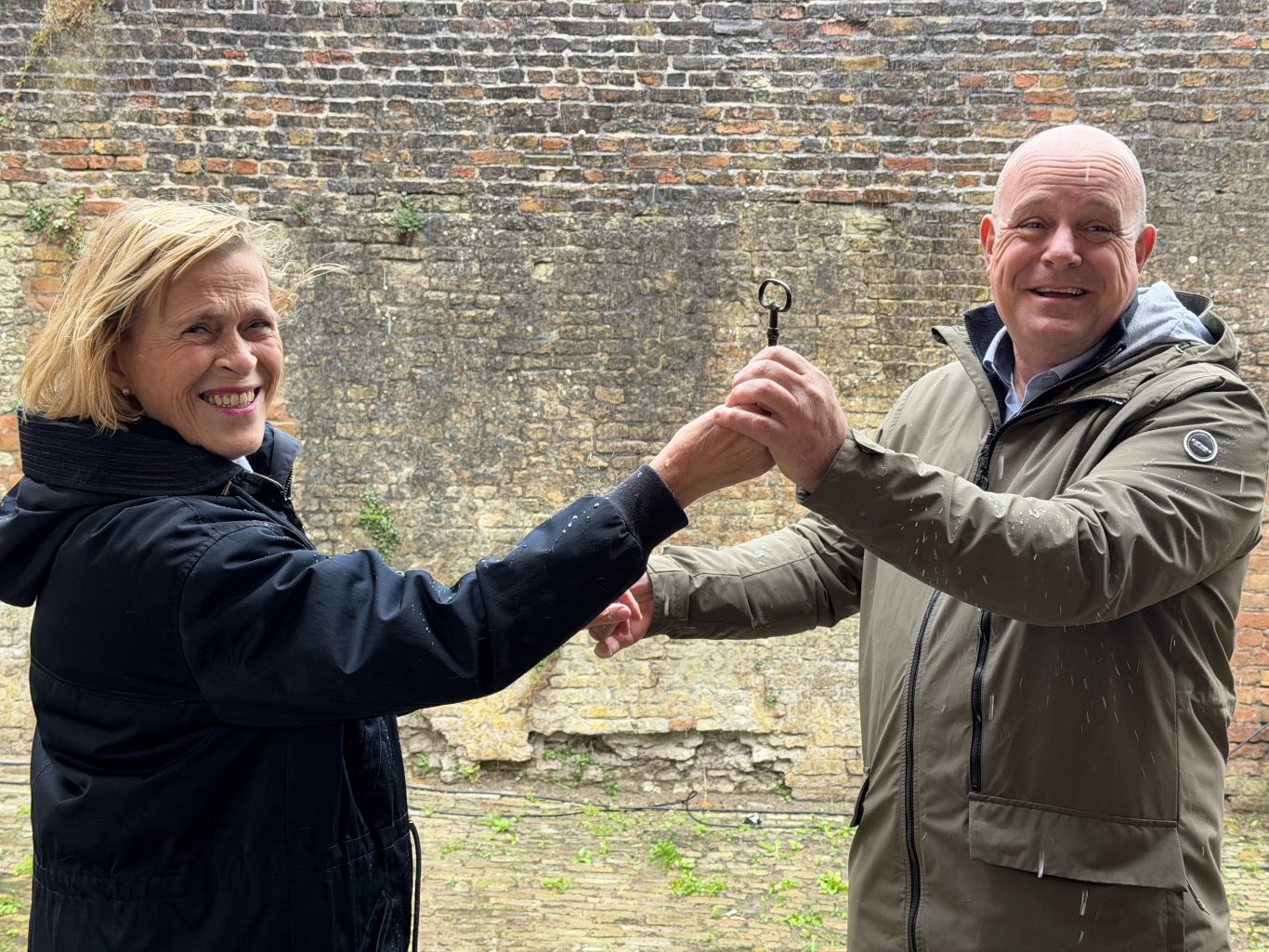 Klovert kreeg van Schrage de sleutel om het bezoekerscentrum officieel te openen. Dat deed hij met veel plezier. Eerder had hij al geholpen met het leggen van steentjes bij de starthandeling en het kruien van zand bij NL Doet. Hij prees de stichting en de vrijwilligers voor hun doorzettingsvermogen.
