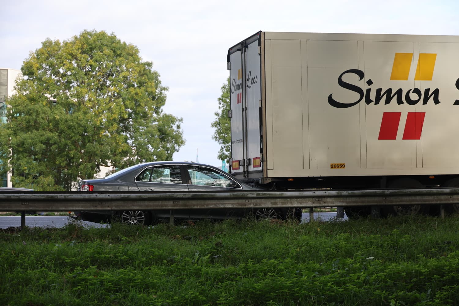Personenauto schiet onder vrachtwagen A20 Nieuwerkerk
