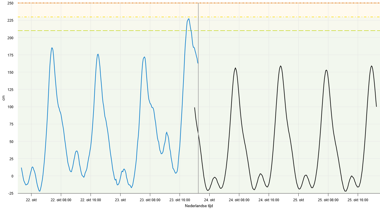 Een voorbijganger kijkt verbaasd toe; zo hoog dat het water zelfs om de hoek kwam, had hij nog nooit gezien. Een fietser die vanaf de pont komt, neemt op de pont een aanloopje en houdt zijn benen omhoog om door het water te komen. Droog vanaf de pont in Gouderak aankomen is door het hoge water niet mogelijk. Ook de zitjes langs het water zijn nauwelijks meer zichtbaar. Het hoogtepunt wordt om 18:10 uur bereikt als bij de Julianasluis een waterstand van 2,25 meter boven NAP wordt gemeten.