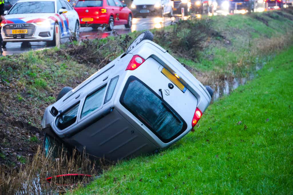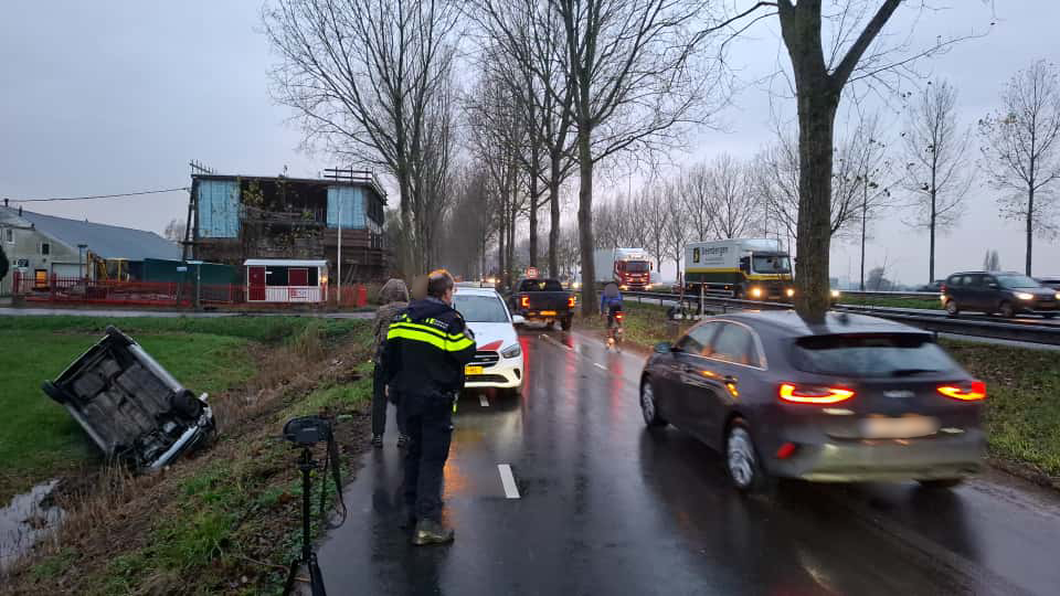 In Moordrecht is vrijdag aan het einde van de middag een voertuig over de kop geslagen en in een sloot beland na een uitwijkmanoeuvre op de Rijksweg bij de Spoorweglaan. De inzittenden bleven ongedeerd.