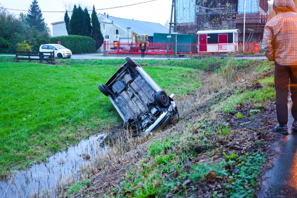 De bestuurder van de auto reed op de Rijksweg en moest uitwijken voor een voertuig dat van rechts kwam. Hierbij is de auto in de modderige berm terecht gekomen en over de kop geslagen. Uiteindelijk kwam het voertuig op zijn dak in de sloot tot stilstand.