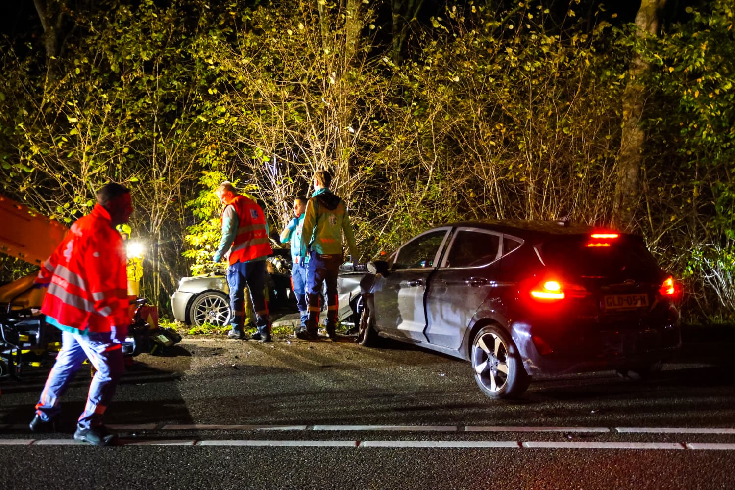 Bij het ongeval zijn twee personenauto’s betrokken. De auto’s zijn met een enorme klap tegen elkaar gekomen en deels in de berm beland. Het lijkt erop dat één van de voertuigen uit de bocht is gevlogen en in de flank is geramd door de andere auto.