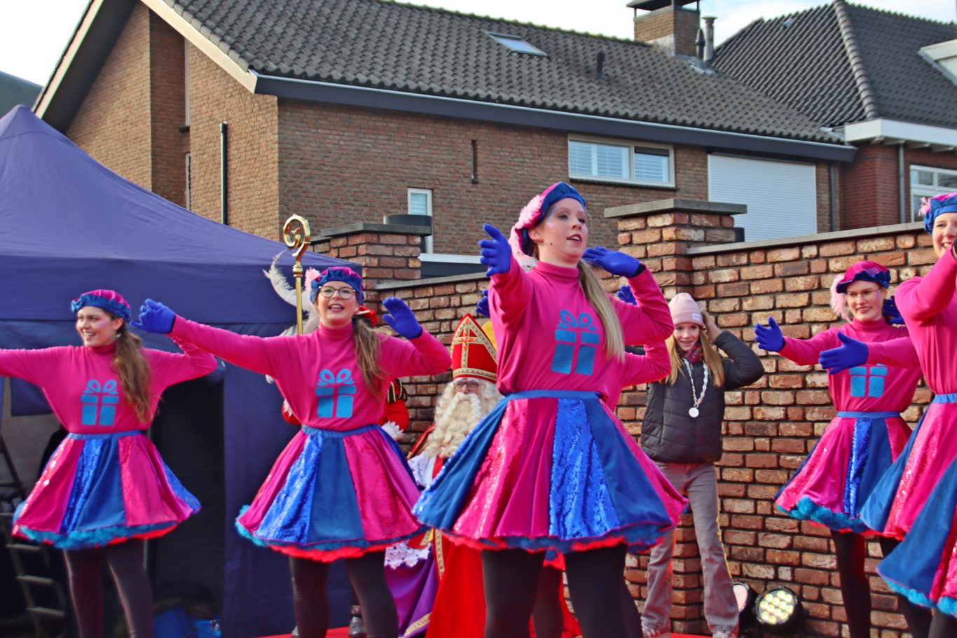 In het Oude Dorp was REND Dance al hard aan het dansen en daar werd de goedheiligman welkom geheten door burgemeester Han Weber en kinderburgemeester Maartje Wijers. De burgemeester moest Sinterklaas wel helpen om aan land te komen. Op het podium werd de Sint verrast met een ingestudeerde dans van REND Dance en na wat woorden uit het grote boek over de burgemeester en kinderburgemeester, vervolgde Sint zijn weg door het Oude Dorp.