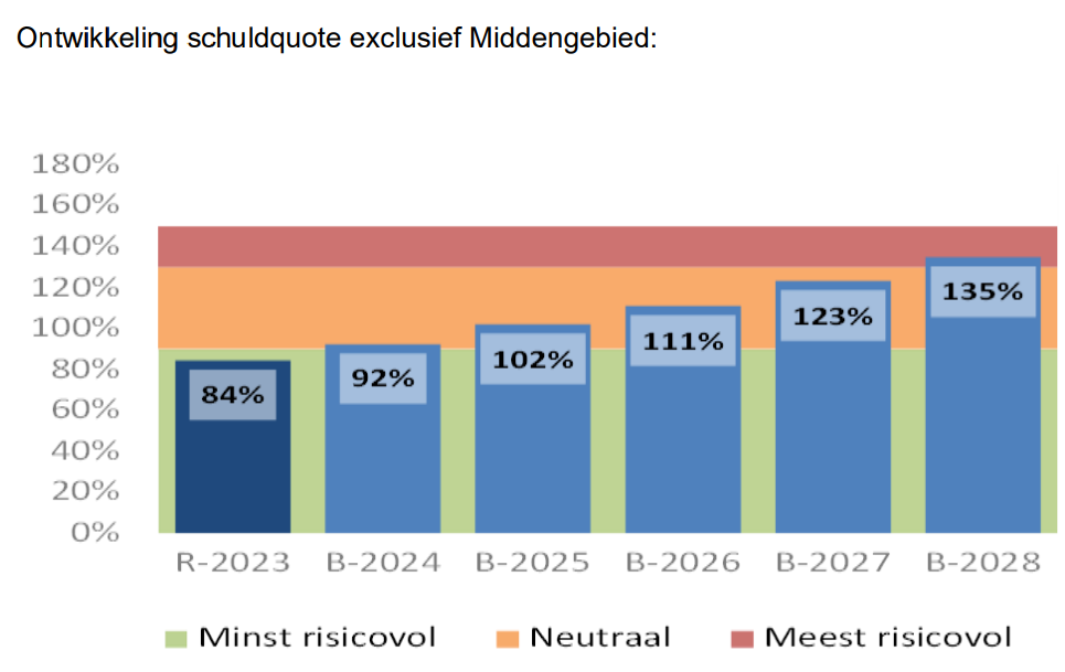 Wel heeft de provincie wat zorgen over de aankomende jaren waarbij de begroting nu een negatief saldo op de begroting heeft. De Provincie schrijft dan ook : “Daarbij vragen de oplopende schuldquote en de dalende solvabiliteit uw blijvende aandacht en moet ook de invloed van de toekomstige ontwikkelingen van het Middengebied worden meegenomen”. De schuldquote is totaal van de geleende gelden gedeeld door de totale jaarlijkse baten en dat loopt op volgens de begroting van Zuidplas. Hierbij zijn de kosten voor leningen voor Cortelande nog niet meegenomen.