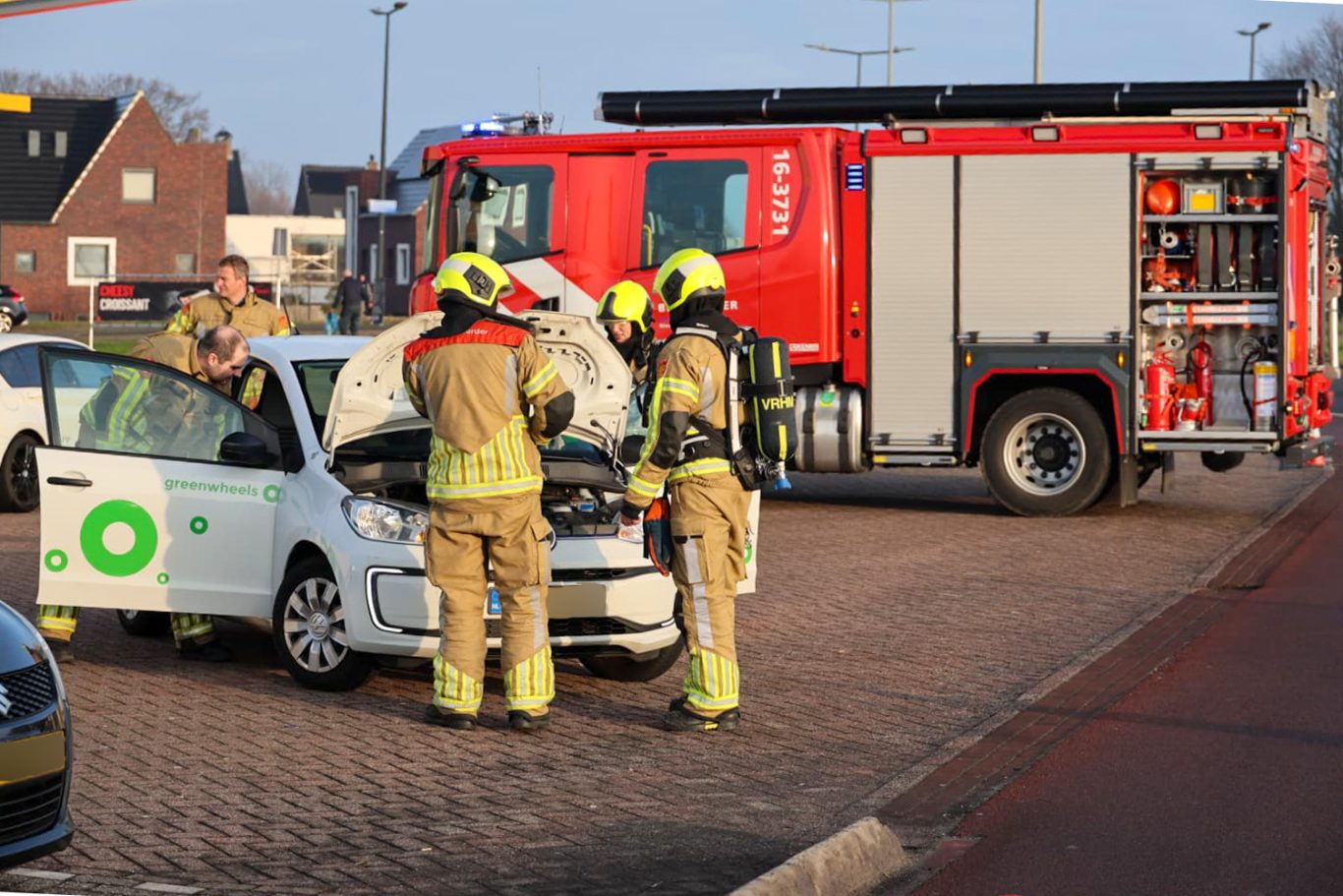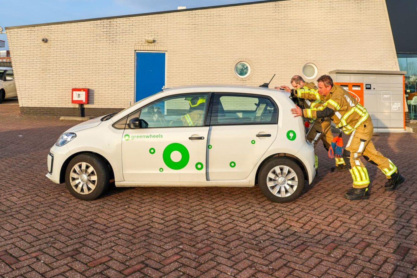 Hierop heeft de brandweer een onderzoek gestart en de voorrem aan de ene kant bleek na meting veel warmer te zijn dan de andere maar van brand was geen spraken. Met vereende krachten hebben de brandweerlieden het voertuig een parkeervak ingeduwd waarna de deelauto maatschappij het voertuig kan laten repareren.