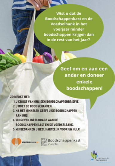 Elk jaar blijkt dat de Voedselbank Zuidplas en de Boodschappenkast Zuidplas in de maanden januari tot en met maart minder levensmiddelen gedoneerd krijgen dan op andere momenten in het jaar. Beide stichtingen worden gedraaid door vrijwilligers en zijn afhankelijk van giften en boodschappen en andere goederen die door inwoners en winkeliers ter beschikking worden gesteld.