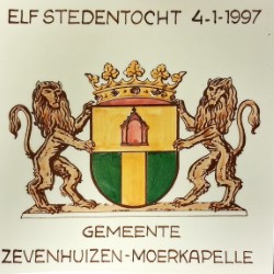 Dit tegeltje is door de toenmalige gemeente Zevenhuizen-Moerkapelle uitgereikt aan de deelnemers uit die gemeente die de tocht van 4 januari 1997 hadden volbracht. Die tocht was de laatste Elfstedentocht en al weer bijna 30 jaar geleden. Een leuk historisch item in onze collectie