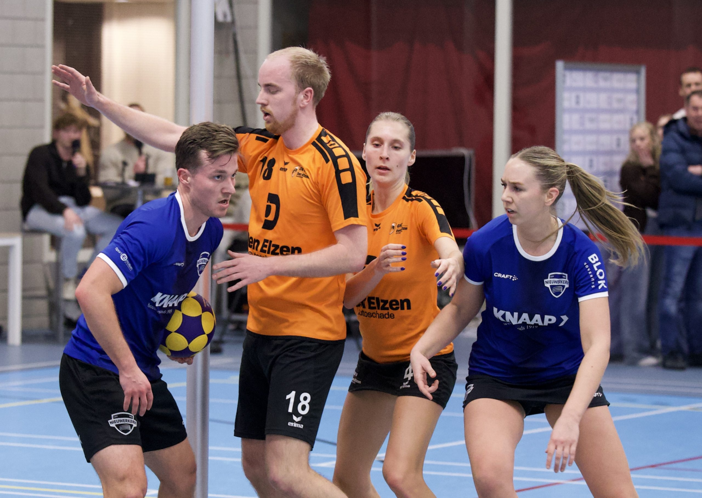 Heel even was er geloof in de hal. Snel na de 11-16 onderschepte Nieuwerkerk de bal en had het vak van Nathan Marck en Bas van Schaik een goede aanval. Als toen de 12-16 was gevallen……