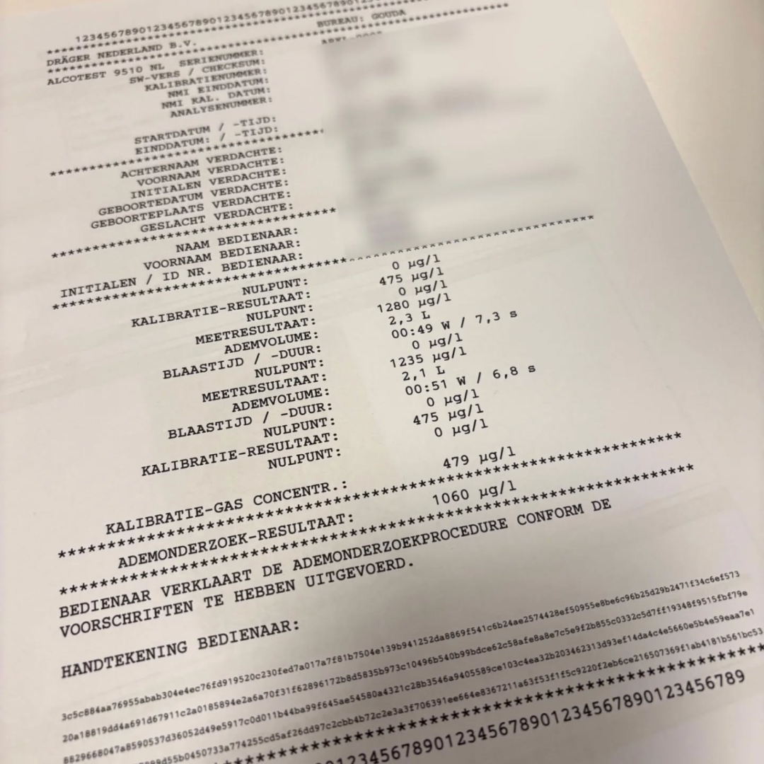 De bestuurder is met de agenten meegegaan naar het politiebureau voor verder onderzoek en verhoor. Daar blies hij bij de ademanalyse 1060 µg/l De bestuurder bleek ook geen geldig rijbewijs te hebben, deze is in 2021 ongeldig verklaard door het CBR.
