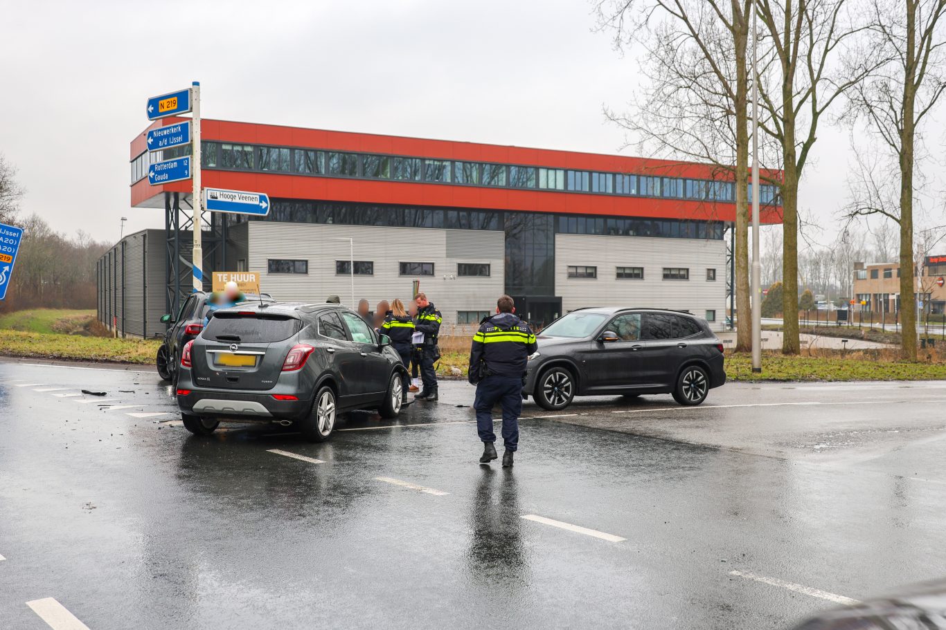 Op zaterdagochtend zijn drie voertuigen zwaar beschadigd geraakt bij een aanrijding op de Eerste Tochtweg (N219) ter hoogte van de Hoogeveenenweg in Nieuwerkerk aan den IJssel. Een voertuig kwam vanaf de Parallelweg Noord en wilde de N219 op draaien. Daarbij ramde de bestuurder een voertuig dat rechtdoor reed op de N219 in de flank.