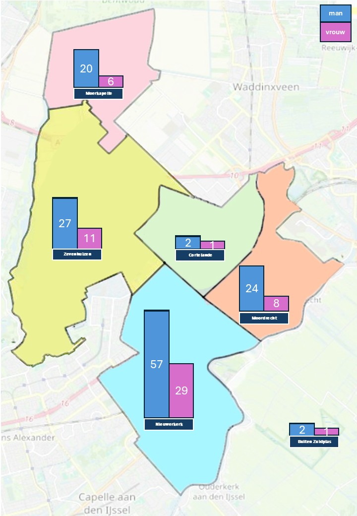 Van de 185 kandidaten die in Zuidplas wonen is het aantal kandidaten per 1.000 inwoners het hoogst in Cortelande. Daar wonen 3 kandidaten maar omdat dit nog niet bebouwd is, maakt dit een extreem hoog percentage. Van de bebouwde worden steekt Moerkapelle hier boven uit, per 1.000 inwoners zijn er 4,9 kandidaten terwijl dat voor Nieuwerkerk 3,7 en de andere dorpen 3,5 is.