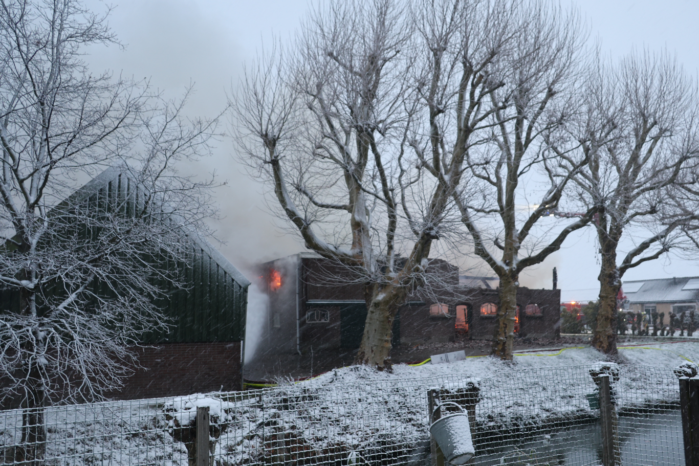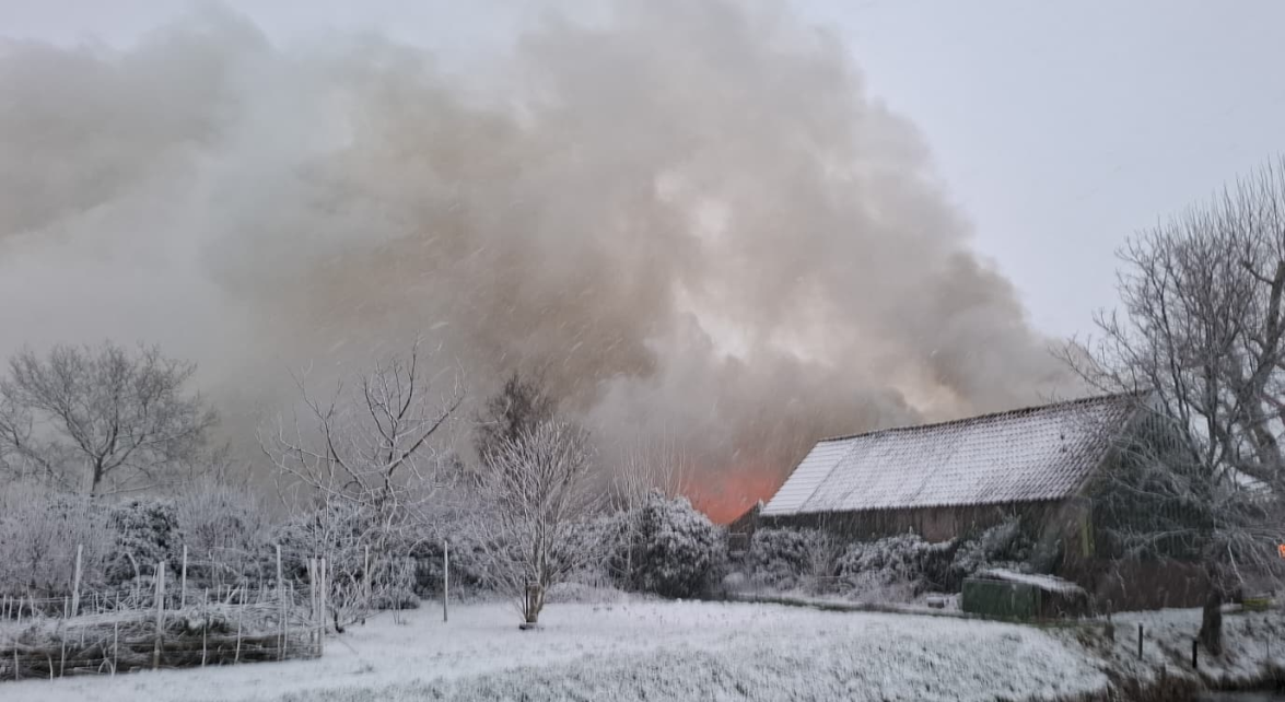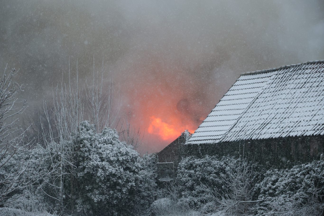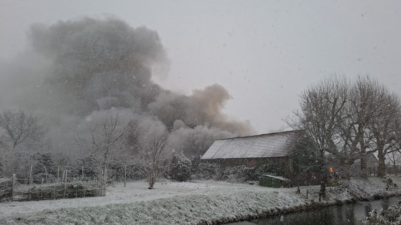 De brandweer verwacht nog wel een tijd bezig te zijn om de brand te blussen. De Herenweg is na de Akkerweg afgesloten.