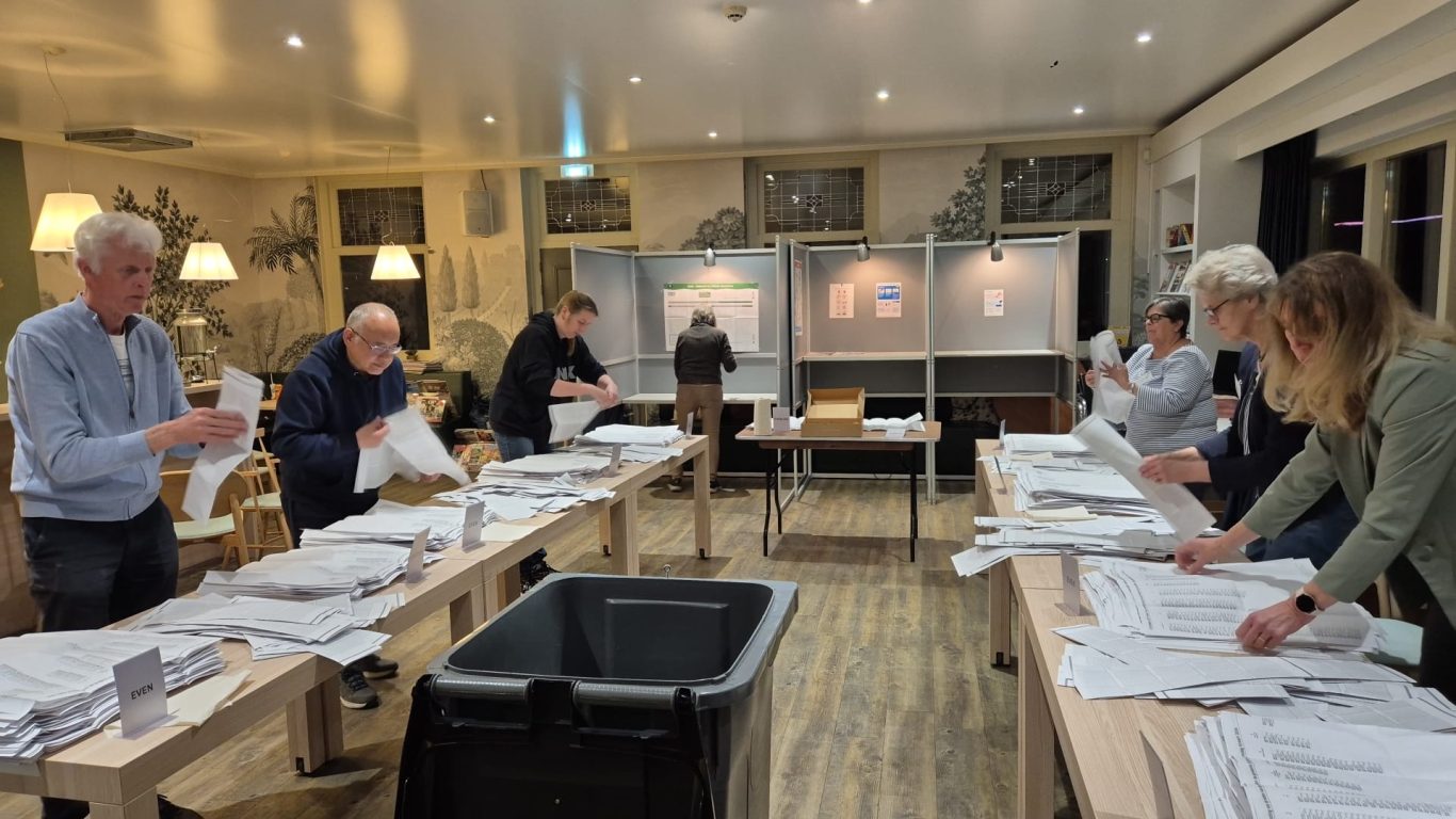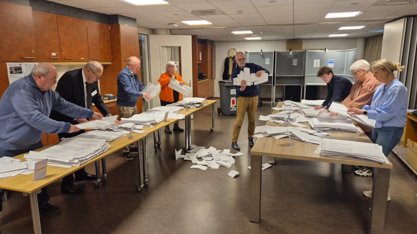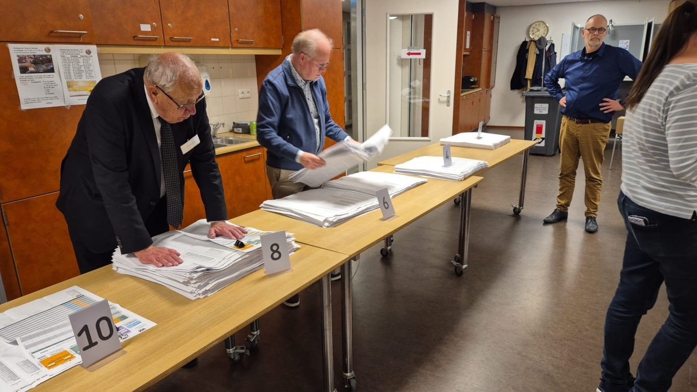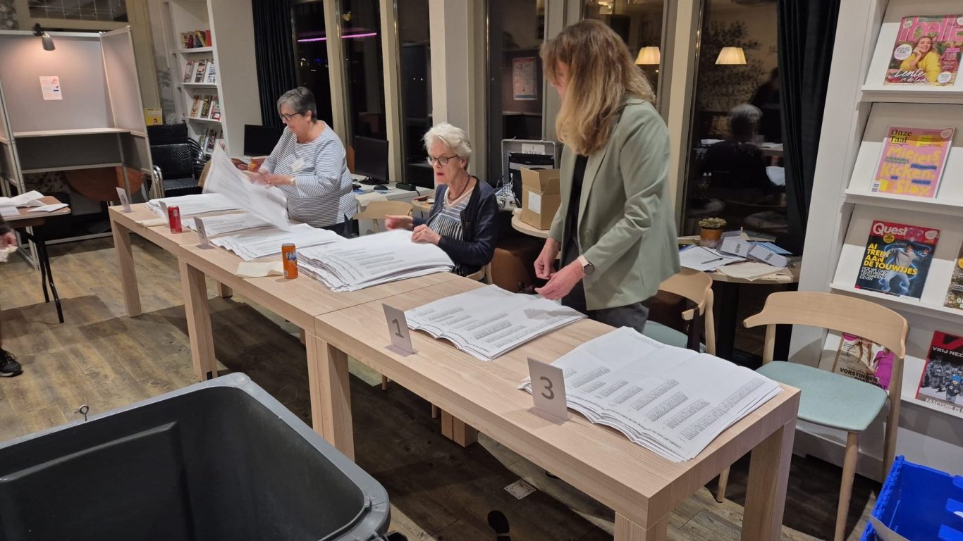 Het stemmentellen in de Meander in Nieuwerkerk aan den IJssel is ook zover dat de uitslag bij de voorlopige uitslag zit. Bij dit grootste stembureau zijn meer dan 1.800 stemmen uitgebracht. Negen mensen zijn de hele avond bezig geweest met het tellen van de stemmen.