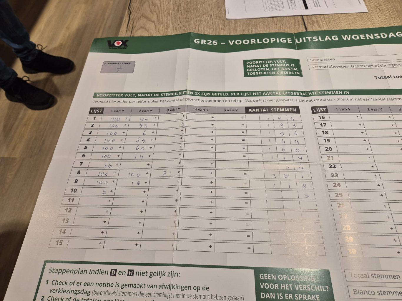 Het tellen van de stemmen is een enorme klus. Als alles twee keer geteld is worden er grote formulieren ingevuld met de uitslag van het stembureau. Onderstaand de uitslag van de Ringvaartkerk in Nieuwerkerk aan den IJssel waar het tellen rond 23.00 uur grotendeels klaar was.