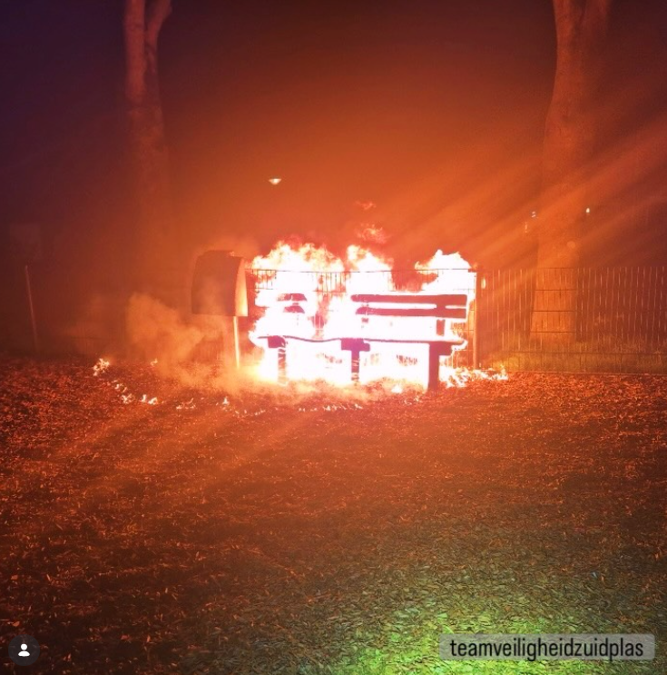 Handhavers die zich in de buurt bevonden, hebben het gebied direct afgezet en de brandweer ingeschakeld. Die wist het vuur snel onder controle te krijgen en te blussen. De financiële schade is aanzienlijk en wordt volgens een eerste schatting geraamd op meer dan €10.000. Deze kosten komen uiteindelijk voor rekening van de samenleving.